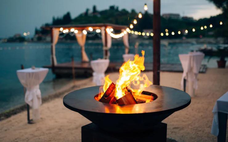 The Maya Fire Bowl gives you the option of either a match lit or electronic ignition to control your flame. A classic lava rock burning display is included and it is also compatible with contemporary fire glass options if you are looking to give your fire a custom feel. This product is made in the United States, and the burner is compatible with both natural gas and propane.
